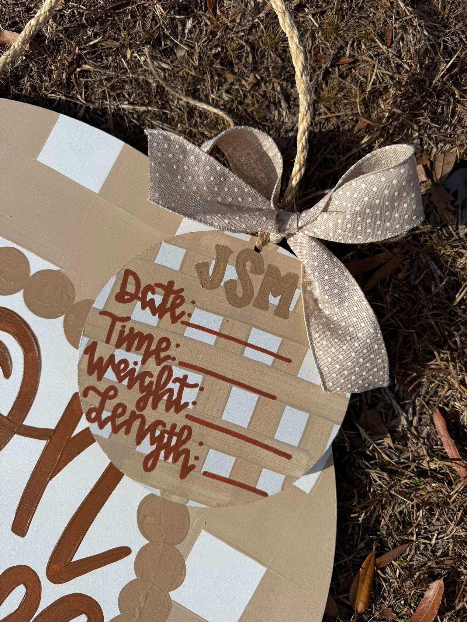 If you or someone you love is welcoming a new baby, celebrate with a fun door hanger! Colors can be customized, but will be painted to match example unless otherwise stated. Please note: This listing is only for the large circle door hanger. The birth stat circle is an additional add on.