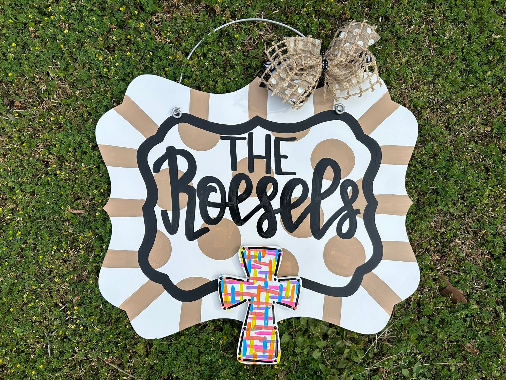 Our newest style of attachment door hanger is the perfect addition to your front door! Listing includes one 22” door hanger, personalized with your choice of wording. Select your choice of attachment at checkout.