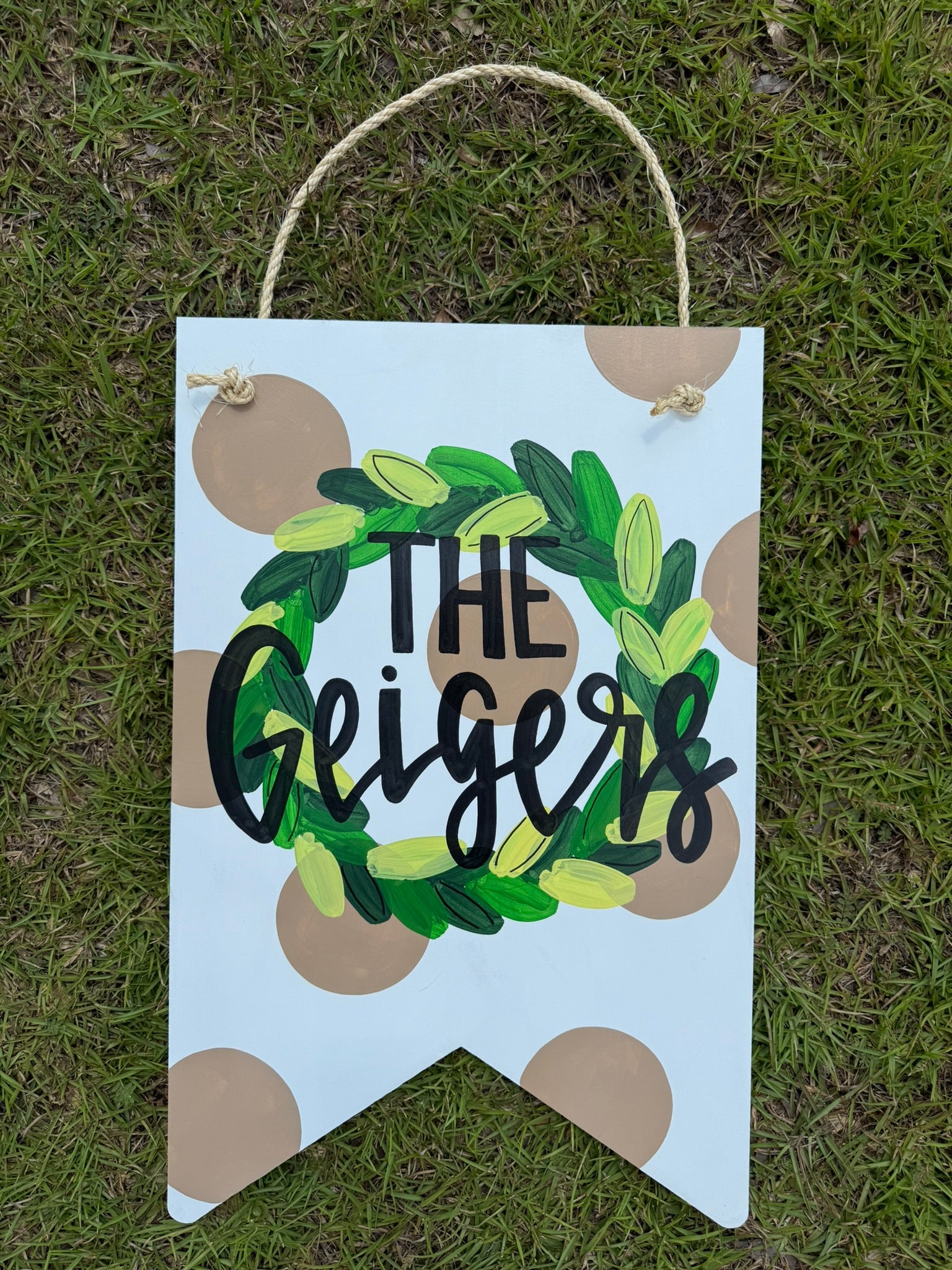 Personalized Neutral Wreath Door Hanger